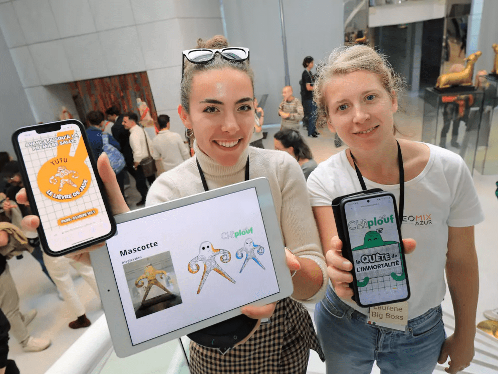Visitors are greeted at the entrance by a motion-activated HoloFan-generated ChiPlouf – the museum mascot and visit guide. By means of an app and floor signage, visitors explore legends and look for art pieces related to the stories.