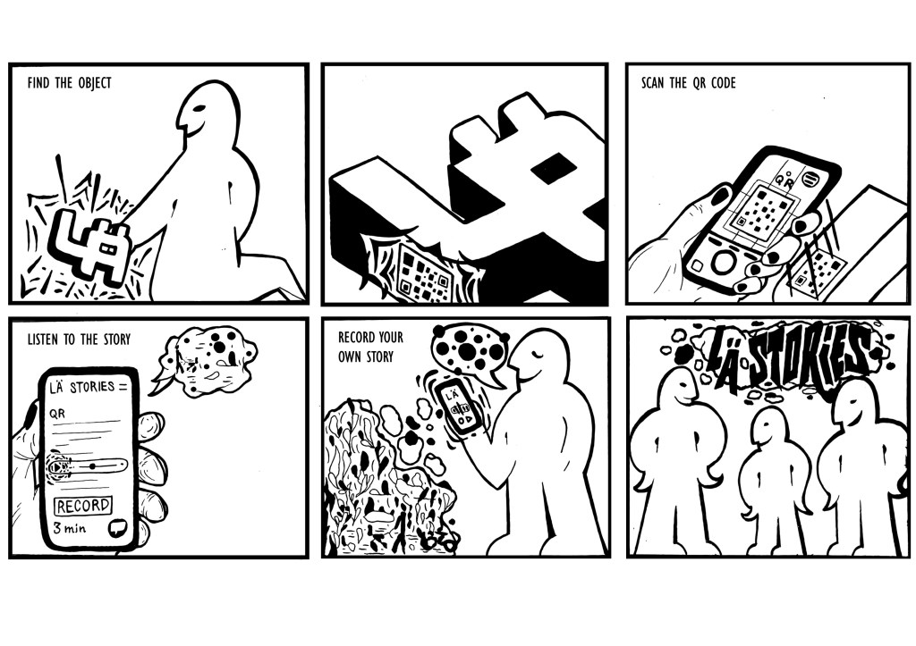 Based on a clue available on the website, users find a 3D-printed object hidden in the neighbourhood which allows them to listen to a story and record a new one.