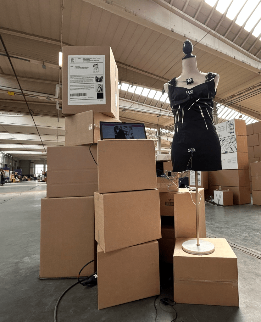 To come up with the concept, we facilitated a workshop to see how people express and withdraw consent and we studied the mechanisms that animals use to defend themselves. We then created several iterations of the Dress using fabric, second-hand dresses, an Arduino nano, proximity sensors, motors, a piezo transducer, a camera, and several meters of wires.