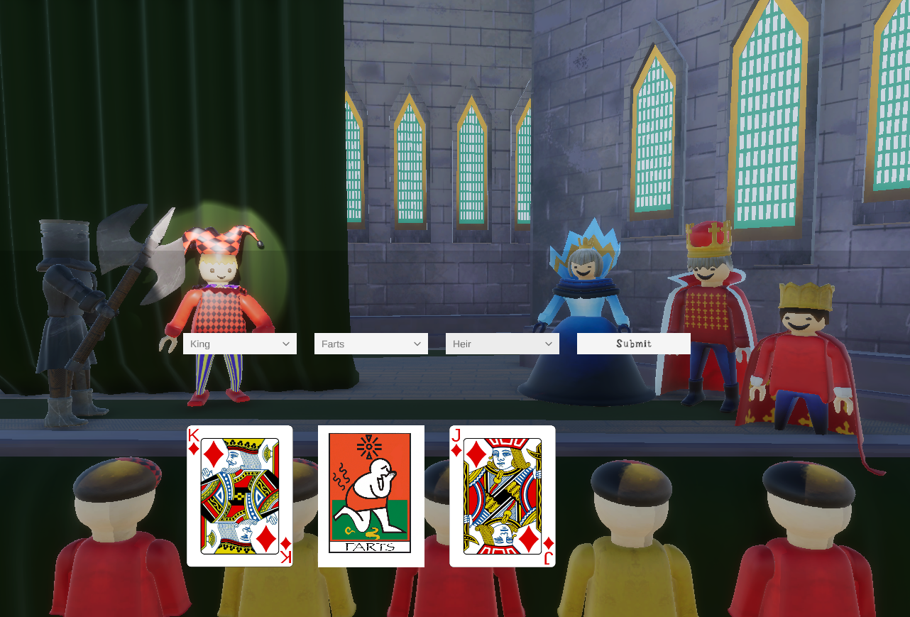 Make the king and his people laugh by choosing a combination of cards that make up a joke. But be careful or that might be your last jest…